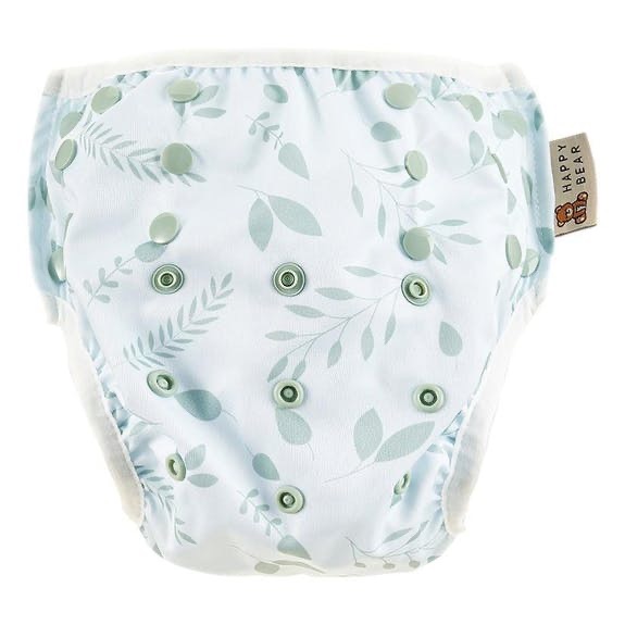 Zorg dat de zwemluier goed aansluit om de beentjes en de romp van je baby, zodat eventuele ontlasting er niet uit kan lopen. Er hoeft geen wegwerpzwemluier onder de HappyBear zwemluier.