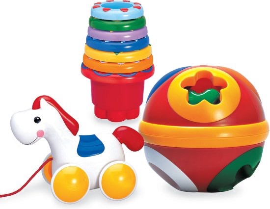 Wauw, wat een toffe set is dit! Deze speelgoed cadeauset heeft alles waar de kleine spruit direct mee aan de slag kan. Super leuk als cadeautje en net verpakt in een grote doos! In deze cadeauset zit de kleurrijke stapeltoren, de vormenstoof bal en het klassieke trekpaardje!