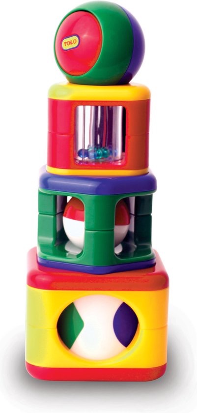 Wat een speelmogelijkheden met deze leuke stapeltoren van Tolo! Elk blokje heeft zijn eigen activiteit voor nog meer speelplezier.